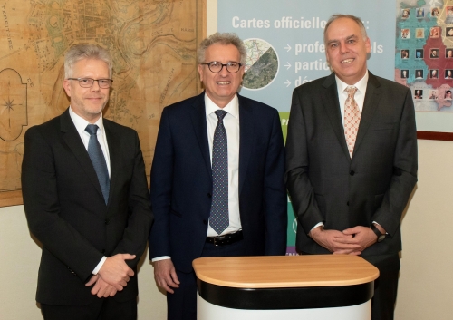 De gauche à droite: M. Bernard Reisch (Directeur adjoint), M. Pierre Gramegna (Ministre des Finances), M. Alex Haag (Directeur).